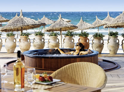 Ein besonderes Ambiente erwartet Sie derweil in Ihrem Hotel Sousse, denn es besticht mit einer Einrichtung im traditionell maurisch-andalusischen Stil. In Ihrer Unterkunft genießen Sie Vorzüge wie separate Schlafräume für Familien oder große Kingsize-Betten für Paare. Während Ihrer Urlaubsreise sollten Sie sich derweil einen Spaziergang durch die Medina, der sogenannten Altstadt von Sousse, die von einer kilometerlangen Stadtmauer umgeben ist, nicht entgehen lassen. Hier treffen Sie nicht nur auf orientalisches Flair, sondern auch auf imposante Bauwerke wie den Ribat und zahlreiche Moscheen. Suchen Sie nach einem ereignisreichen Tag Ruhe und Entspannung, dann statten Sie dem Wellnessbereich Ihres 4-Sterne- oder 5-Sterne-Hotels einen Besuch ab. Hier entspannen Sie bei einer Massage mit aromatischen Ölen oder lassen im Hamam die Seele baumeln. Abgerundet wird Ihr Urlaub schließlich durch ein abwechslungsreiches Animationsprogramm am Abend, das mit aufwendig inszenierten Shows gewiss zu verzaubern weiß. Tauchen Sie ein in diese faszinierende Kultur und buchen Sie jetzt Ihr Hotel in Sousse mit alltours sensationell günstig!