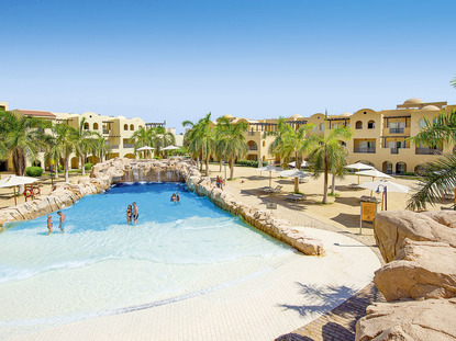 Makadi Bay ist ein beliebter Ferienort am Roten Meer in Ägypten. Der internationale Flughafen von Hurghada ist nur etwa 20 Minuten mit dem Bus entfernt, sodass die Anreise unkompliziert und schnell erfolgt. In Makadi Bay angekommen, finden Sie zahlreiche Freizeitmöglichkeiten vor, wobei die meisten Last Minute Makadi Bay-Urlauber vor allem die erstklassigen Tauchmöglichkeiten zu schätzen wissen. Die hiesige Unterwasserwelt fasziniert mit Doktorfischen, Riffbarschen und Korallenriffen – ein Paradies zum Schnorcheln, Schwimmen und Tauchen. Die örtliche Tauchbasis sorgt zudem dafür, dass sowohl Anfänger als auch Fortgeschrittene das Riff im Last Minute Makadi Bay-Urlaub sicher erkunden können. Wenn Sie es hingegen etwas geruhsamer angehen möchten, dann suchen Sie den Sandstrand der Bucht auf, der mit seinen zahlreichen Liegen zum Relaxen einlädt. Golfspieler dürfen sich derweil auf den Madinat Makadi Golfplatz freuen. Auf dem 18-Loch-Golfplatz verbessern sie nicht nur ihr Handicap, sondern genießen stets auch einen schönen Blick auf das Rote Meer.
