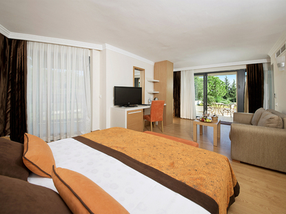 Ein Ausflug, der ebenfalls für Kinder und Erwachsene ein Spaß ist, ist die Fahrt nach Phaselis, der antiken Hafenstadt. Die historischen Ruinen lassen sich vom Boot aus besichtigen, wobei eine Fahrt mit der hiesigen Seilbahn eine Extraportion Spaß verspricht. Ein besonderer Glanzpunkt während der Last Minute Kemer-Ferien ist indes ein Ausflug nach Chimaira, denn hier treten Gase aus dem Boden, die schließlich große Flammen entstehen lassen. So wundert es kaum, dass Chimaira auch "Feuerfeld" genannt wird und sich zahlreiche Mythen und Sagen um den Ort ranken – insbesondere in Verbindung mit der alten Stadt Olympos. Sie liegt am Fuße des Berges Tahtalı Dağı, auf dessen Gipfel eine Seilbahn fährt. Oben angekommen, eröffnet sich Ihnen ein sagenhafter Ausblick über das Gebirge. Wer mag, unternimmt kleinere Wanderungen und kann mit der letzten Bahn wieder in das Tal hinabfahren. Sie sehen: Kemer ist das ideale Urlaubsziel für Strandurlauber, Naturfreunde und aktive Familien. Buchen Sie jetzt Ihren Last Minute Kemer-Urlaub mit alltours richtig preisgünstig und freuen Sie sich auf erlebnisreiche Tage!