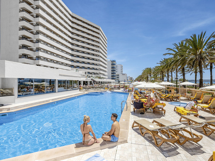 Direkt an der schönen Strandpromenade und dem kilometerlangen Sandstrand der Playa de Palma auf Höhe des Balneario 11. Vom lebhaften Zentrum ca. 500 m entfernt. Zur Inselhauptstadt Palma sind es ca. 10 km. Bushaltestelle in der Nähe.