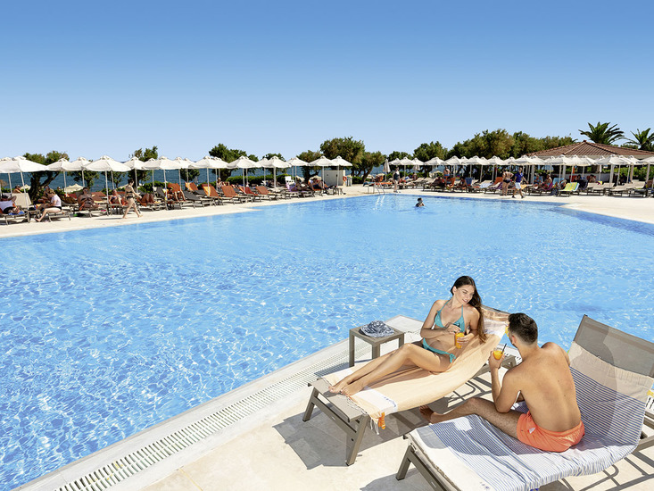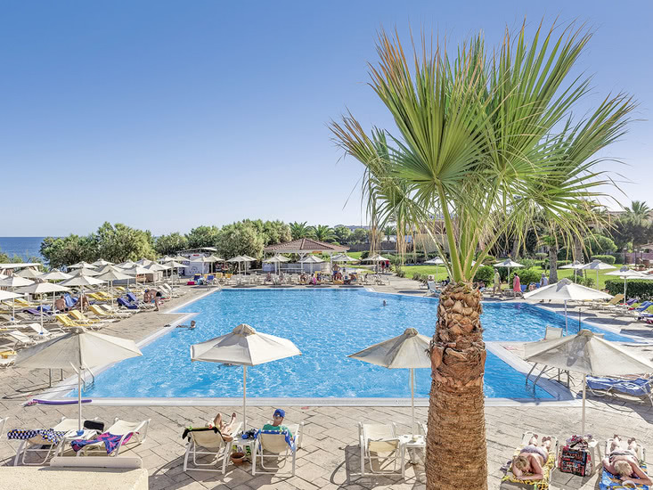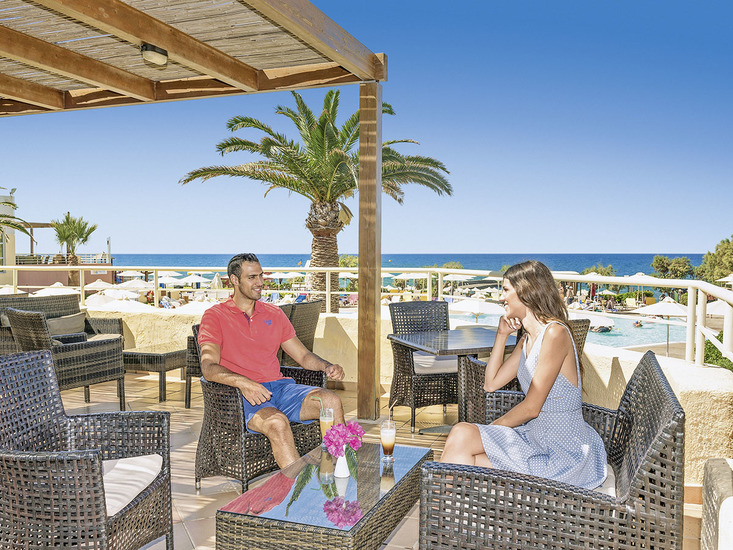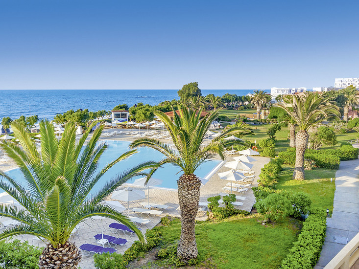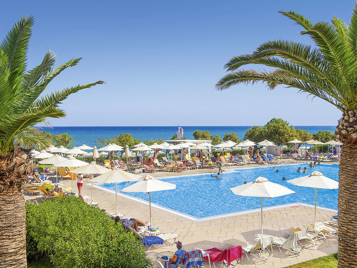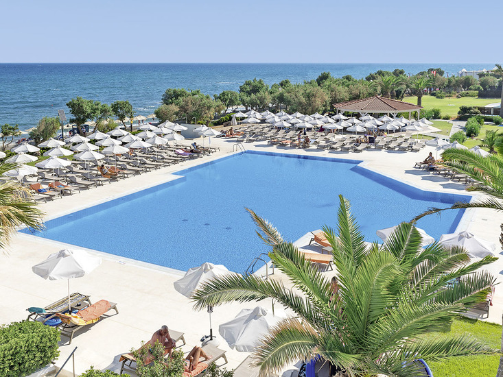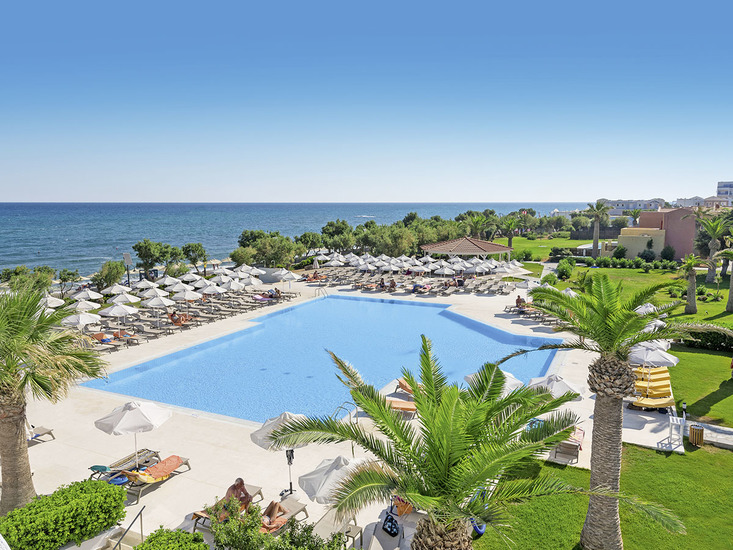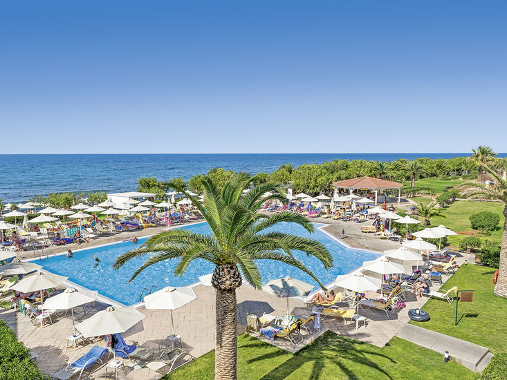 Strandvergnügen pur – direkt am weitläufigen Strand lädt die im kretischen Dorfstil erbaute Ferienanlage mit großzügigem Garten zum Entspannen unter Palmen ein. Relaxen Sie am Strand mit Blick auf die türkisblaue Ägäis oder nutzen Sie das umfangreiche Fitness- und Unterhaltungsprogramm für die ganze Familie.