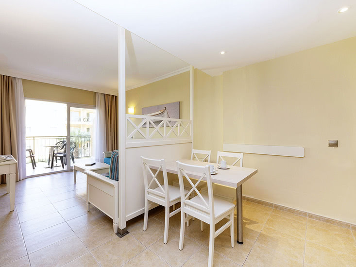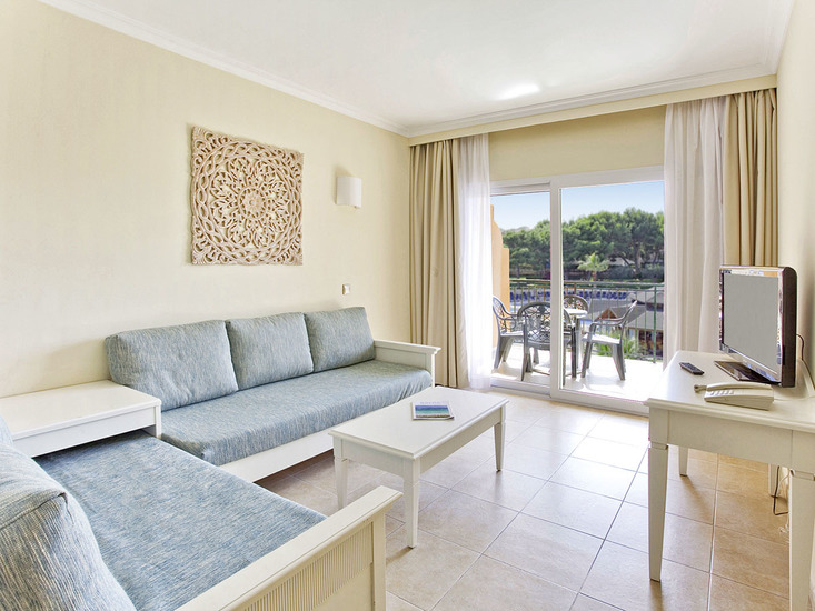 • App. Typ C (APC, ca. 80 qm), im Winter 2017/18 renoviert, Wohnraum mit Schlafsofa, 2 sep. Schlafzimmer, Klimaanlage (w./k.), Kitchenette, TV (32 Zoll), Tel., WLAN (geg. Geb.), Mietsafe. 2 Badezimmer mit Bad, WC, Föhn. Verglaster Balkon mit Fenster. Max. 4E+2K