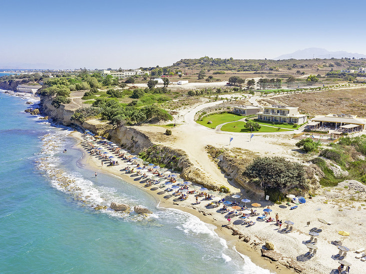 Oberhalb des flach abfallenden Sandstrandes mit traumhaftem Blick auf das tiefblaue Meer in ruhiger grüner Umgebung. Nach Mastichari ca. 3 km. Regelmäßiger Shuttleservice (bei min. 6 Personen) inklusive. Bis Kos-Stadt mit dem lebhaften Hafen und vielfältigen Einkaufs- und Unterhaltungsmöglichkeiten ca. 23 km, regelmäßiger Shuttleservice nach Kos-Stadt gegen Gebühr.