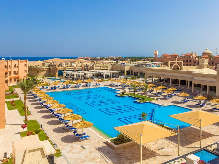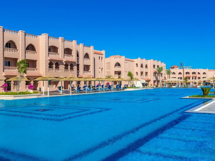 Im Feriengebiet Hurghada North/Rotes Meer, ca. 100 m vom privaten Sandstrand. Bars, Restaurants, Supermarkt ca. 300 m, Einkaufsmöglichkeiten ca. 3 km entfernt. Shuttle zum Stadtzentrum (geg. Geb.).