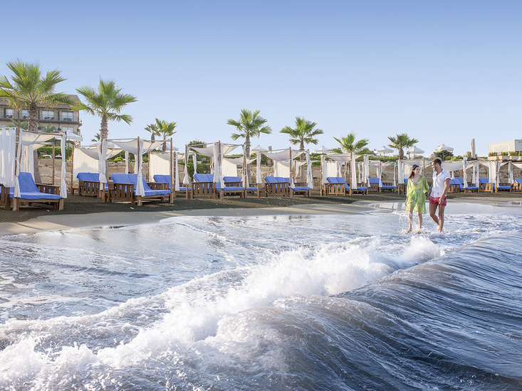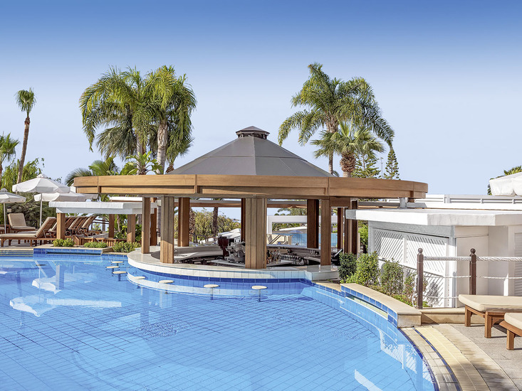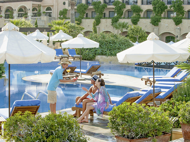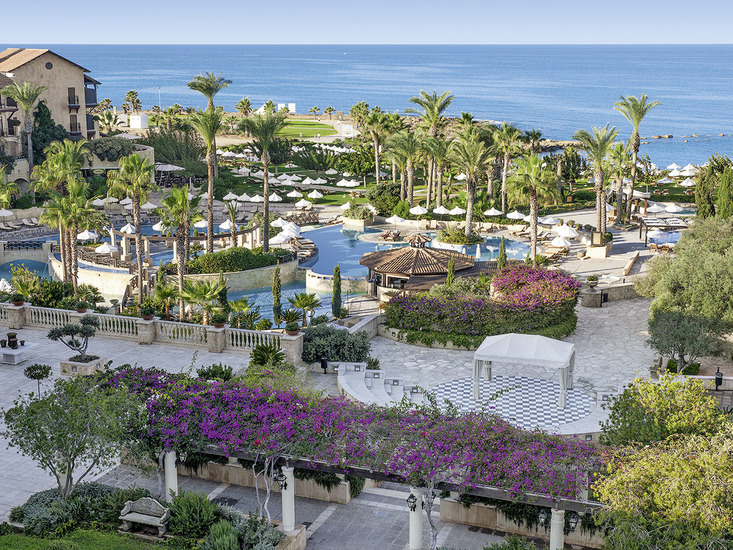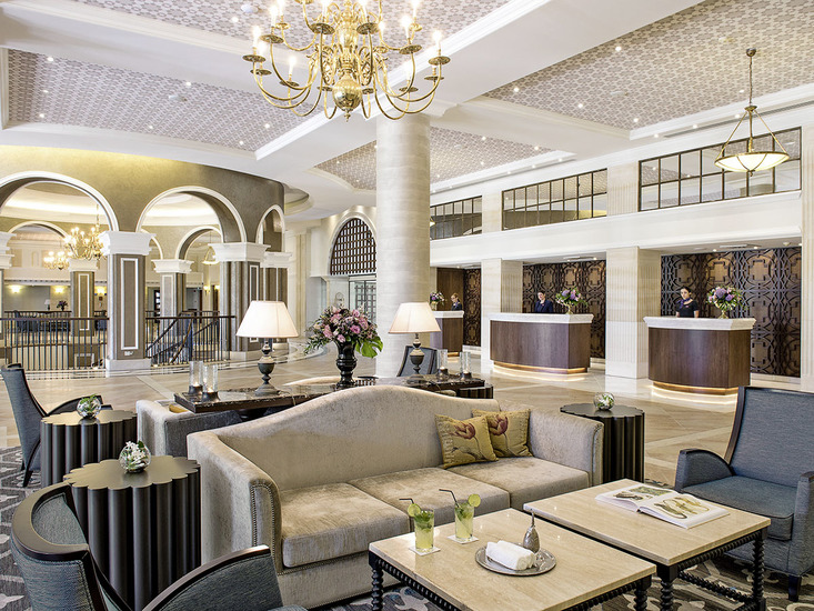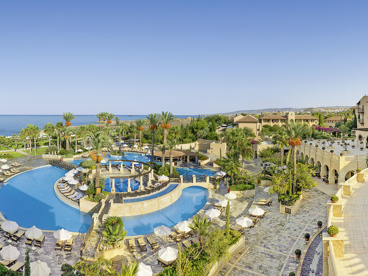 Palastartiges Hotel mit Gartenanlage, 3 Swimmingpools, Sonnenterrasse, Liegen, Sonnenschirmen, Badetüchern, Pool-/Snackbar. Offener Empfangsbereich, Rezeption, WLAN (inkl.), 2 Buffetrestaurants, 3 À-la-carte-Restaurants, 3 Bars, Spielplatz, Golfplatz. Landeskategorie: 5 Sterne, 250 Zimmer.
