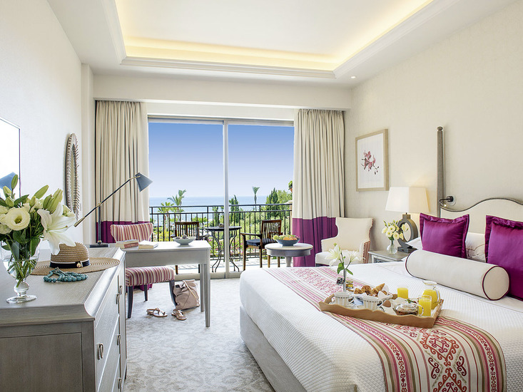 • Doppelzimmer (ca. 34 qm), Klimaanlage, Kaffee-/Teezubereiter, Minibar, WLAN (inkl.), TV (40 Zoll), Safe. Bad/Dusche, WC, Föhn. Balkon. Wahlweise seitlicher Meerblick/direkter Meerblick. Max. 3E