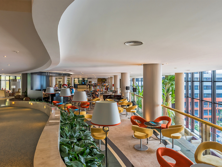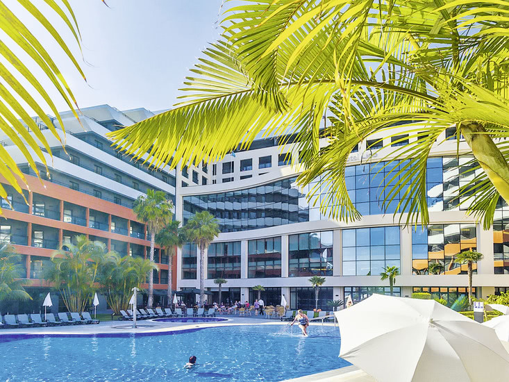 Modern gestaltetes und renoviertes Tophotel mit schön angelegtem Swimmingpool, Sonnenterrassen, Liegen, Schirmen, Badetüchern, Pool-/Snackbar. Empfangshalle, Sitzecken, Panoramablick, WLAN, Pianobar, Fernsehraum. Hauptrestaurant, mehrere stilvolle Themenrestaurants (japanisch, italienisch, portugiesisch). Friseur, Hallenbad. Landeskat.: 5 Sterne, 342 Zimmer, 7-8 Etagen, mehrere Lifte.