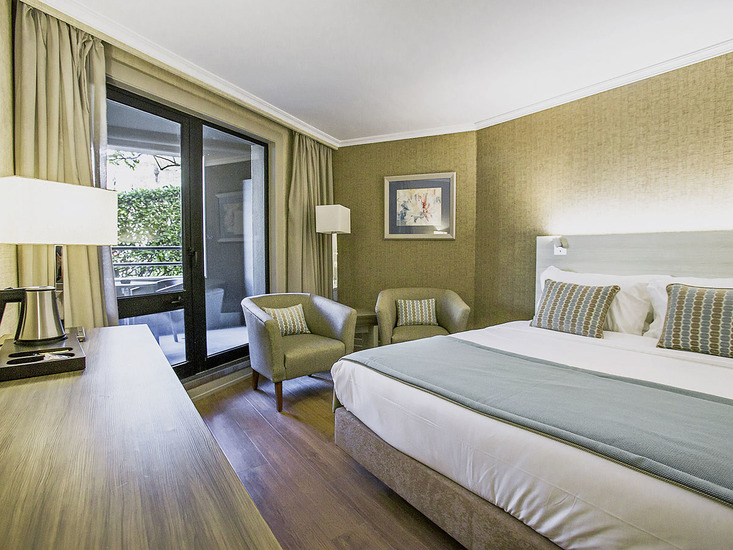 • Doppelzimmer (ca. 24 qm), teilweise renoviert, Klimaanlage, TV (32 Zoll), Minibar (1x täglich Auffüllung der Softdrinks), Telefon, WLAN, Safe. Bad/Dusche, WC, Föhn. Balkon, seitlicher Meerblick. Max. 2E+1K