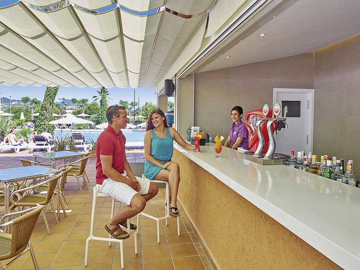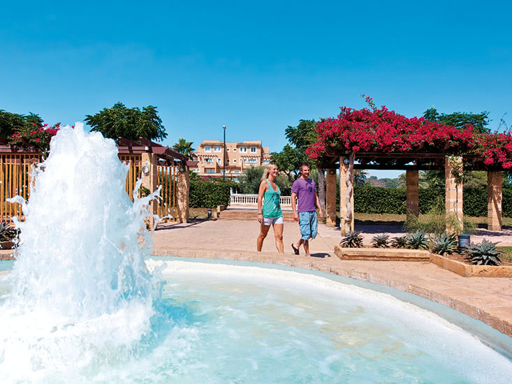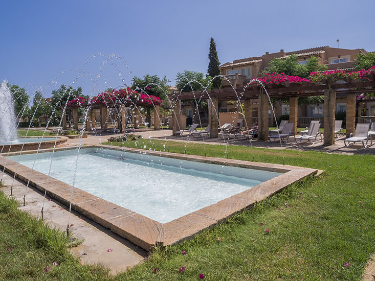 Großzügige Ferienanlage der Komfortklasse, Haupthaus, mehrere Wohngebäude im mallorquinischen Villenstil (teilweise durch die Hotelzufahrt vom Haupthaus getrennt). Große, parkähnliche Gartenanlage (ca. 28.000 qm), Schatten spendende Palmen, hübsch gestaltete Springbrunnen, Poollandschaft, mehrere Sonnenterrassen, Liegen und Schirme, Poolbar mit großer Sitzterrasse. Im Haupthaus Empfangshalle, Rezeption, Mietsafes, WLAN (geg. Geb.), Internet-terminal (geg. Geb.), Aufenthaltsraum (Großbild-TV), Bar, großzügiges Restaurant mit Außenterrasse, Waschsalon (geg. Geb.). Landeskat.: 3 Schlüssel, 220 Einheiten, 2-3 Etagen.