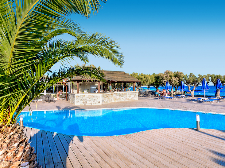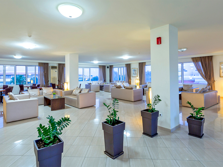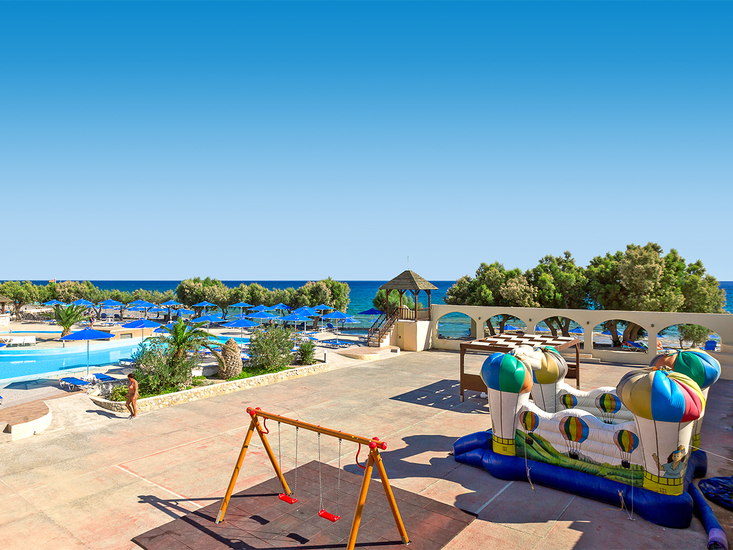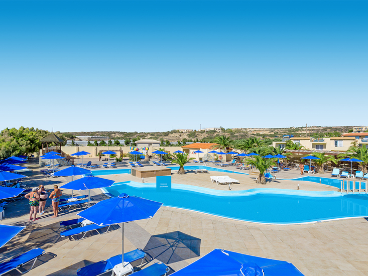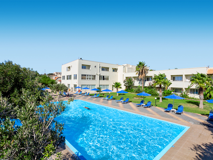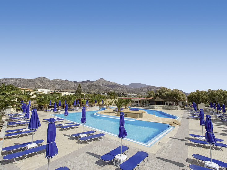 Gepflegte Ferienanlage mit 2 Swimmingpools, Poolbar, Liegen, Schirmen und Badetüchern (gegen Kaution) am Pool und am Strand. Rezeption, WLAN, Restaurant, Bar, Minimarkt. Landeskategorie: 4 Sterne. 154 Zimmer, Lift.