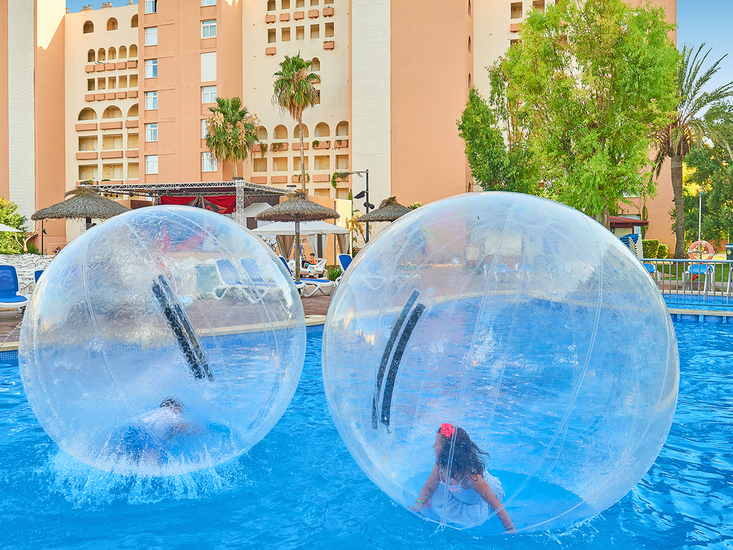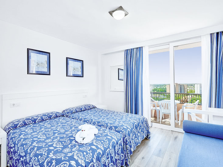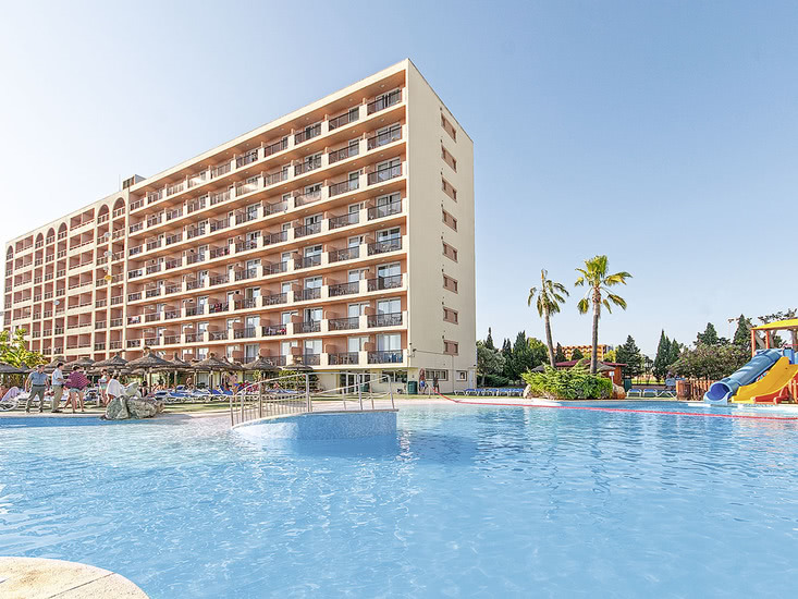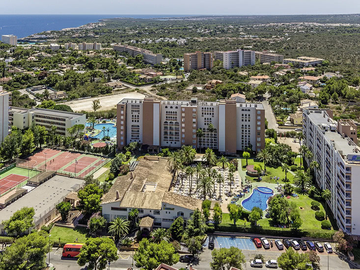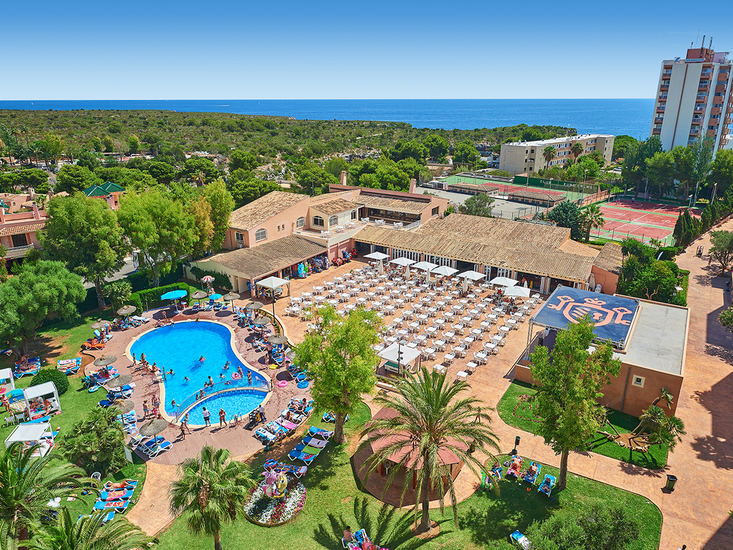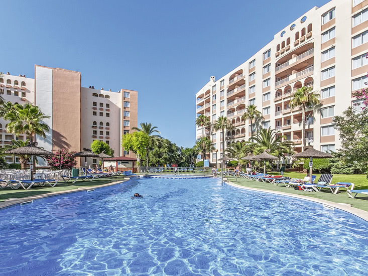 Beliebte, freundlich gestaltete, voll klimatisierte Ferienanlage der Mittelklasse. 5 Wohngebäude, umgeben von schönem Garten. 4 Swimmingpools, mehrere Sonnenterrassen, Liegen und Schirme, Pool-/Snackbar. Im Haupthaus Empfangshalle mit Rezeption, 2 Internetterminals (gegen Gebühr), WLAN (in der Lobby inklusive), Aufenthaltsraum mit TV, Bar, Restaurant. Landeskategorie: 4 Sterne, 396 Einheiten, 4-12 Etagen, je 2 Lifte pro Gebäude, Gebäude Formentera 1 Lift.