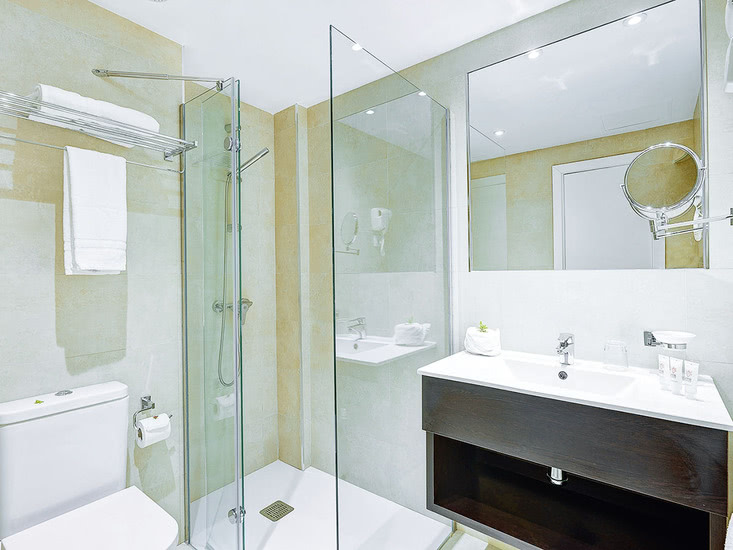 • Doppelzimmer (DZ, ca. 23 qm), Klimaanlage (w./k.), Kühlschrank, TV (39 Zoll), Telefon, WLAN (gegen Gebühr), Mietsafe. Badezimmer mit Dusche, WC, Föhn. Balkon/Terrasse, wahlweise Splashpoolblick (DZK)/seitlicher Meerblick (DSM) Max. 2E/2E+1K, zur Alleinnutzung buchbar (DEZ)