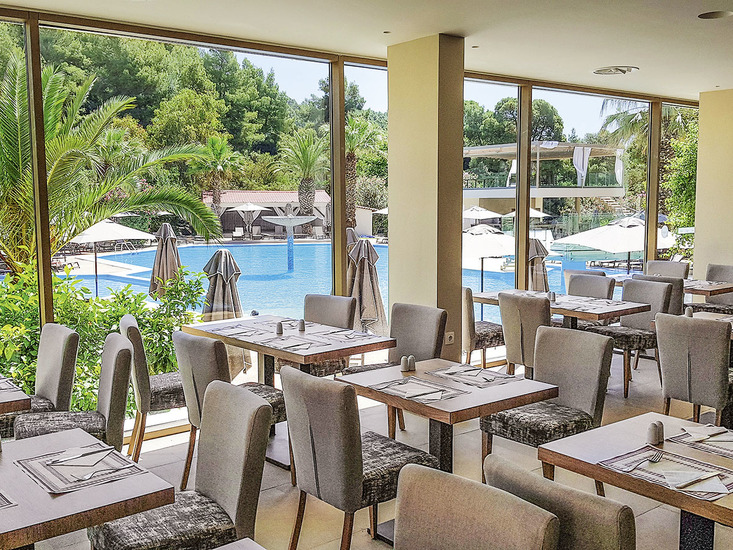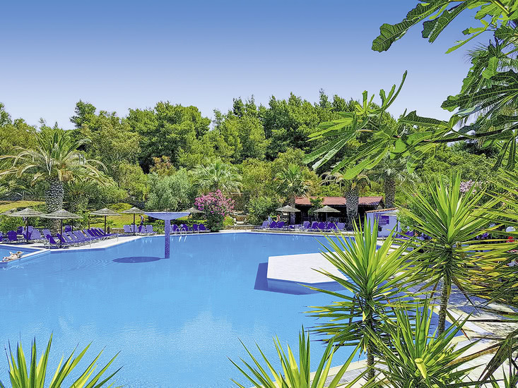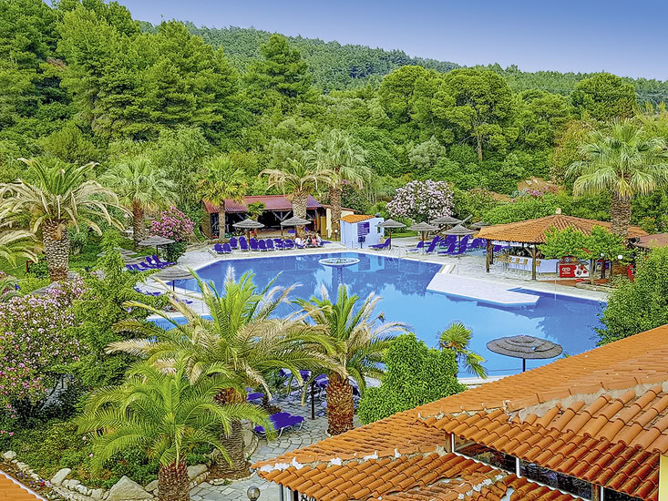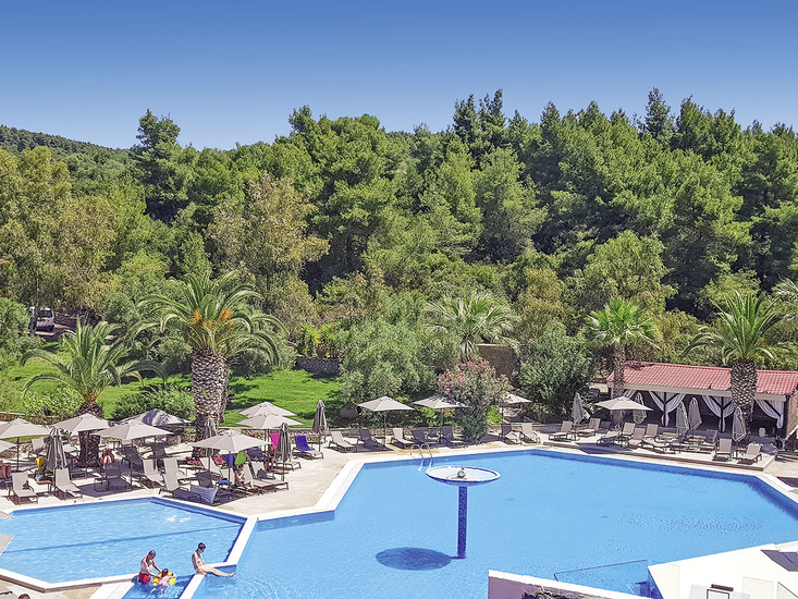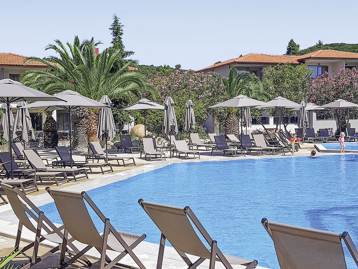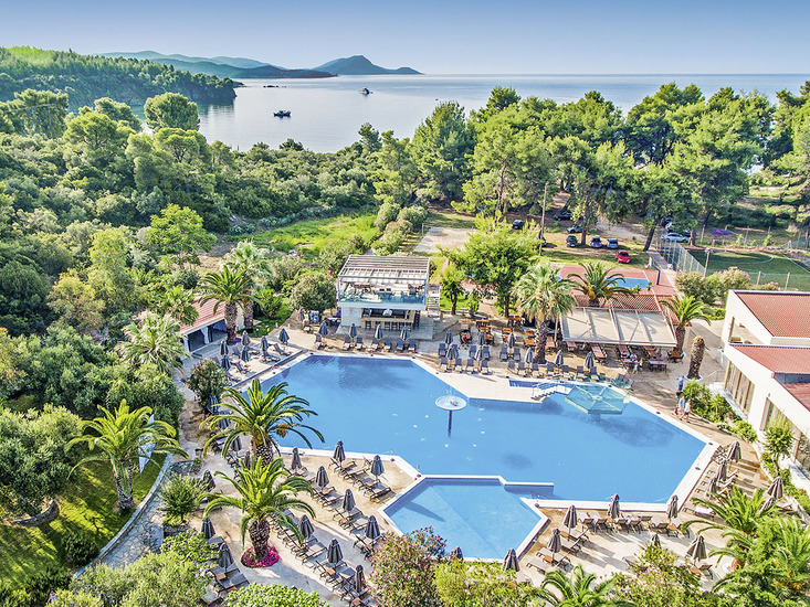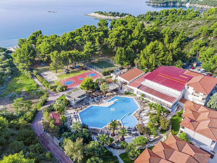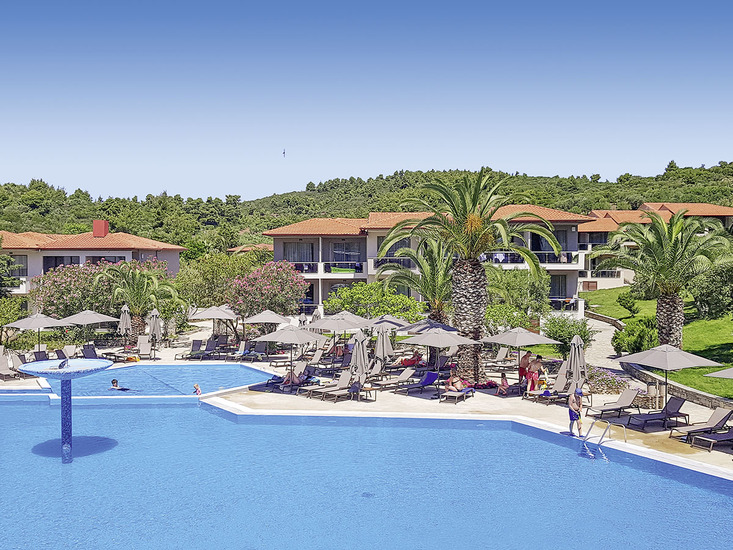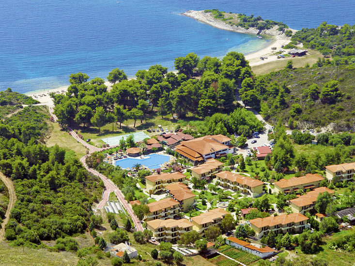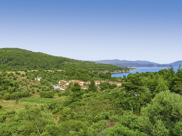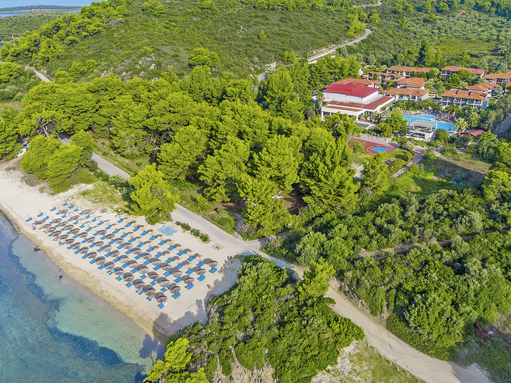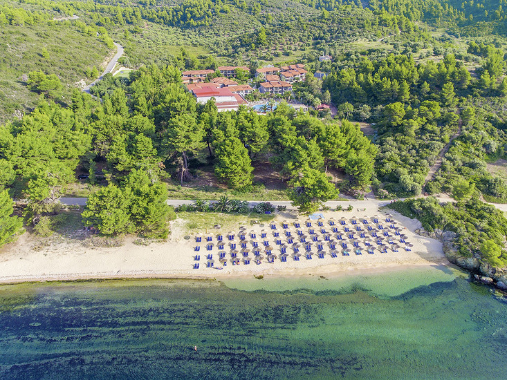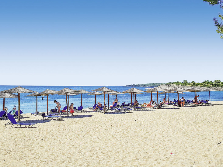 Die Anlage befindet sich in ruhiger, idyllischer Lage, umgeben von herrlicher Natur und direkt an einer schönen Sandbucht (mit kleinen Kieseln durchsetzt). Zum nächsten Ort Neo Marmaras ca. 11 km (Shuttlebus 3x pro Tag, geg. Geb.).