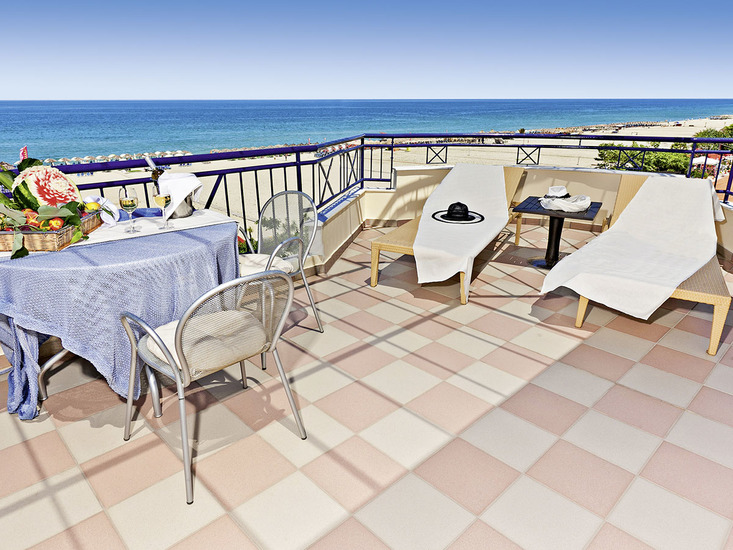 • Besonderer Wohnluxus für Sie:Juniorsuiten (JS, ca. 31 qm), mit separatem Wohnbereich, Klimaanl., Kühlschrank, TV (32 Zoll), Tel., Safe. Dusche, WC, Föhn. Balkon/Terrasse. Max. 3E