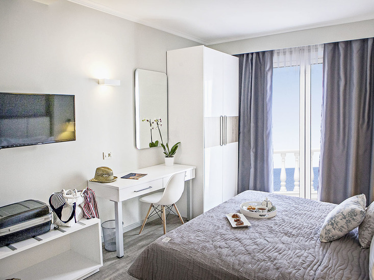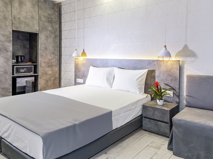 • Doppelzimmer (DZ, ca. 20 qm), Klimaanlage, Kühlschrank, TV, Telefon, Safe. Dusche, WC, Föhn. Balkon/Terrasse. Max. 2E+1K, auch zur Alleinnutzung buchbar