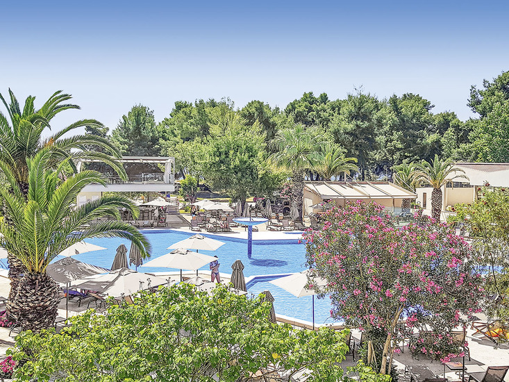 2018 renovierte, weitläufige, persönlich geführte Ferienanlage, bestehend aus 1 Haupthaus und 2-stöckigen Wohngebäuden. Im Mittelpunkt der Anlage großer Süßwasserswimmingpool mit integriertem Kinderpool, Sonnenterrassen, Liegen, Schirmen am Pool und am Strand, Badetücher geg. Kaution, Poolbar. Empfangshalle mit Rezeption, WLAN, TV-Ecke, Restaurant mit großer, überdachter Außenterrasse, Theaterbühne. Landeskategorie: 4 Sterne, 138 Zimmer, 2 Etagen.