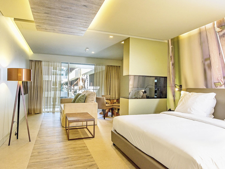 • Suiten (ca. 46 qm), sep. Schlafzimmer, Klimaanlage, TV (32 Zoll), Kitchenette, WLAN, Safe. Walk-in-Dusche, WC, Föhn, Bademäntel, Slipper. Balkon, wahlw. seitlicher/direkter Meerblick. Savoy Premium Experience (in den Suiten mit Meerblick) mit privilegiertem Check-in und Willkommensgruß, Zugang zum „The Club“ mit kontinentalem Frühstück und tagsüber Erfrischungsgetränken. Nutzung des Premium Sundecks mit Jacuzzi, Massagebereich und tagsüber Erfrischungsgetränken. Bei Buchungen mit direktem Meerblick kostenloser Eintritt zum Saccharum-Spa, Max. 3E/2E+2K