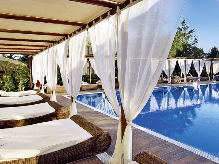 Die voll klimatisierte, hochwertig ausgestattete Ferienanlage besteht aus einem Haupt- und mehreren Wohngebäuden. Großzügiger Garten mit Poollandschaft. Sonnenterrassen, Liegen, Schirmen, Badetüchern, teilweise überdachter Pool-/Snackbar mit Sitzterrasse. Helle, moderne Empfangshalle, Rezeption, WLAN (inkl.), Sitzgruppen, Bar (TV) mit Außenterrasse, Restaurant. Landeskat.: 4 Sterne, 340 Einh., 2-5 Etg., 5 Lifte.