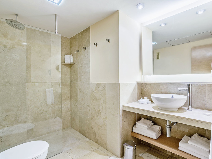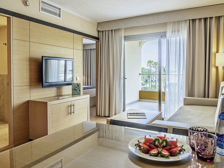 • Royal-Terrace-Appartement (APT, ca. 40 qm), Wohnraum mit Schlafsofa, separates Schlafzimmer, Klimaanlage (warm/kalt), Kitchenette, Mikrowelle, TV (32 Zoll), Telefon, WLAN (inklusive), Mietsafe. Dusche, WC, Föhn. Private Terrasse, 2 Liegen oder balinesisches Bett, Jacuzzi. Max. 3E+1K