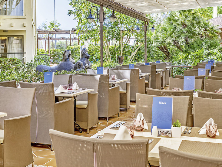 • all inclusive: Frühstücksbuffet, mittags u. abends k./w. Buffet (je nach Gästeaufkommen kann das Mittagessen in der À-la-carte-Bar stattfinden), Showcooking, Themenabende. Getränke inklusive