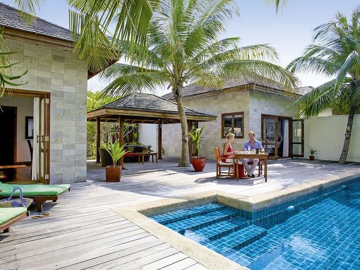 • Luxuriöse Private-Pool-Villen (VIP, ca. 287 qm, 5 St.), Klimaanlage, Minibar, Kaffee-/Teezubereiter, Telefon, WLAN (500 MB pro Tag/pro Person inkl.), Safe, Föhn, Bad, Außendusche, WC, Terrasse, eigener Garten, Privatswimmingpool, eigene Liegen, Schirme am Strand. Max. 3E/2E+2K