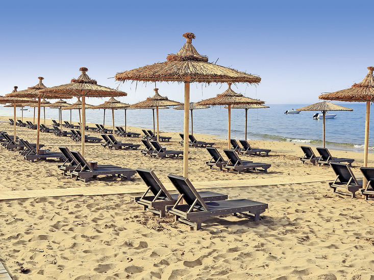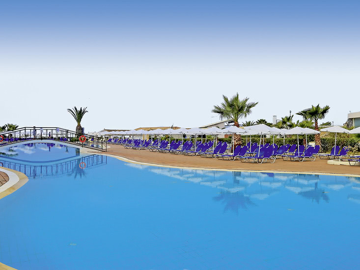 Weitläufiges Ferienresort der guten Mittelklasse, inmitten einer großen Gartenanlage. Poollandschaft mit mehreren Pools und kl. Wasserpark, Sonnenterrassen, Liegen und Schirmen am Pool und am Strand, Pool-/Snackbar. Empfangshalle mit Rezeption, WLAN, TV-Ecke. Restaurant mit Außenterrasse, mediterranes À-la-carte-Restaurant "Ammos" (Reserv. erf.), Amphitheater. Landeskat.: 5 Sterne, 684 Zimmer.