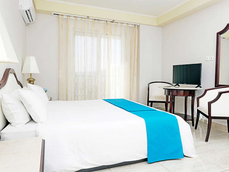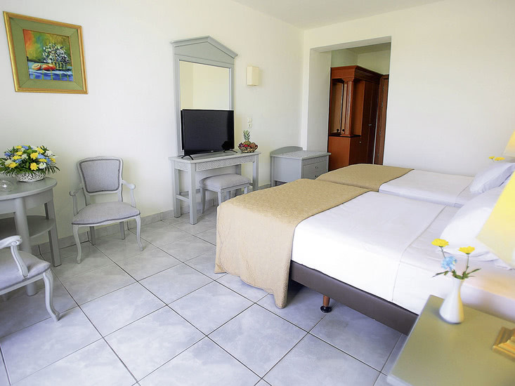 • Doppelzimmer (DZ, ca. 25 qm), Klimaanl., Kühlschrank, TV, Tel., Mietsafe. Bad/Dusche, WC, Föhn. Balkon/Terrasse. Wahlw. seitl. Meerblick (DSB). Max. 3E