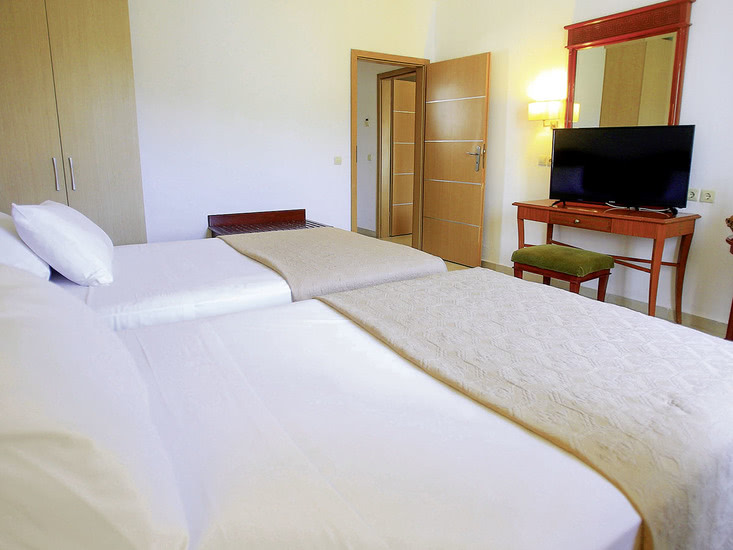 • Familienzimmer (FZ, ca. 40 qm), sep. Schlafzimmer, Klimaanl., Kühlschrank, TV, Tel., Mietsafe. Bad/Dusche, WC, Föhn. Balkon/Terrasse. Max. 4E, wahlw. mit 2 sep. Schlafzimmern (FA, max. 6E)