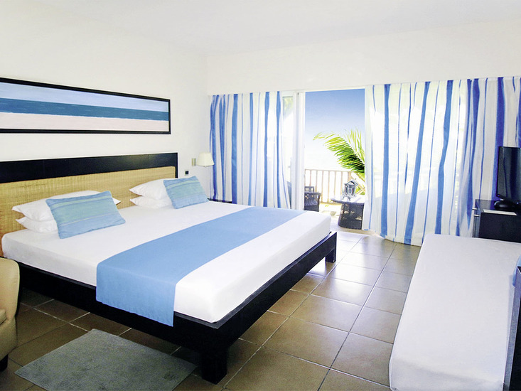 • Deluxe-Superior-Zimmer (ca. 35 qm), Klimaanlage, Minibar, Kaffee-/Teezubereiter, Safe, TV, Telefon, WLAN, Dusche, WC, Föhn, Balkon oder Terrasse, seitl. Meerblick. Max. 3E/2E+2K