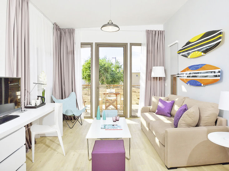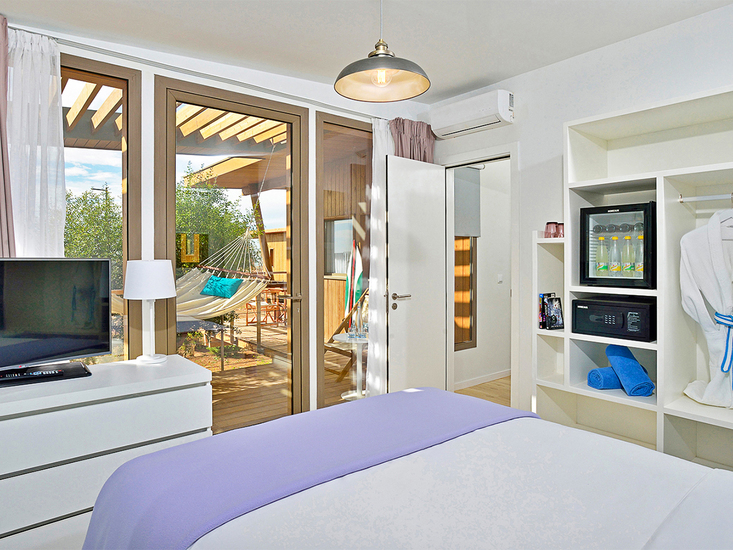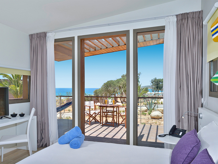 • House-Master-Cabana (MA, ca. 57 qm), Maisonette mit 2 Schlafräumen, Wohnzimmer, Klimaanlage, Minibar (gegen Gebühr), TV (42 Zoll), WLAN, Safe. Dusche, WC, Föhn. Terrasse. Max. 5E