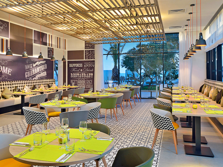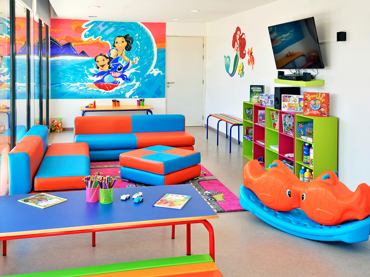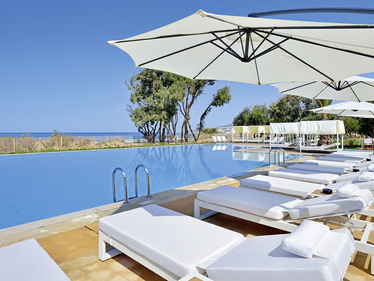 Originelle Anlage mit großem, zum Meer ausgerichtetemSwimmingpool mit integriertem Kinderpool. Sonnenterrasse, Liegen, Bali-Betten, Schirme, Badetücher (gegen Kaution). Empfangsbereich, Rezeption, WLAN im gesamten Hotel, "Play Bar", Hauptrestaurant, À-la-carte-Restaurant, Spielezimmer. Landeskategorie: 4 Sterne, 75 Bungalows.