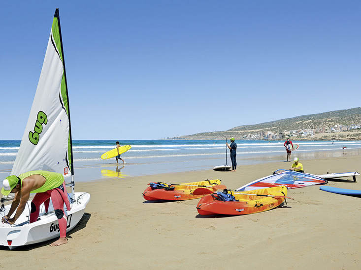Neu erbautes Hotel in einem beliebten Surfgebiet. Ruhig und direkt am kilometerlangen Sandstrand. Nach Agadir mit zahlreichen Einkaufs- und Unterhaltungsmöglichkeiten ca. 18 km.