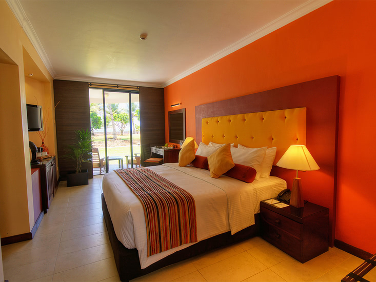• Bungalow (BU, ca. 31 qm) Klimaanlage, Minibar, Safe, Telefon, WLAN, Dusche, WC, Föhn, BK/TE mit Meerblick. Max. 2E+1K.