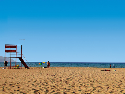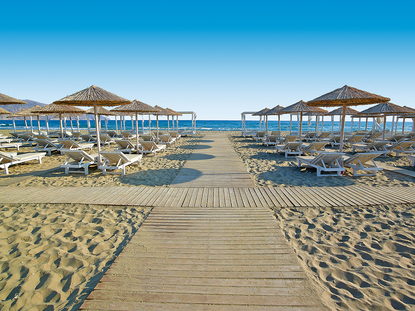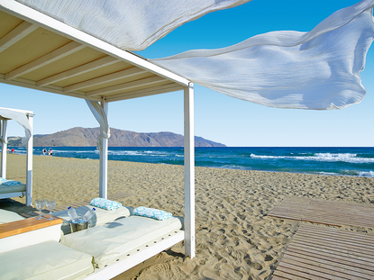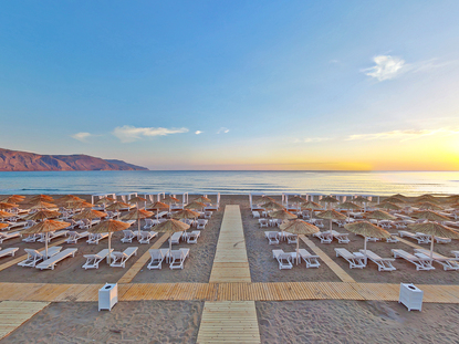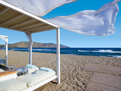 An der Nordwestküste der Insel Kreta, die zu Griechenland gehört, liegt der kleine Ort Georgioupolis. Die direkte Lage am Mittelmeer und die traumhafte Landschaft umgeben von imposanten Bergen machen den Ort zu einem beliebten Ziel für erholsame Ferien. Wenn Sie Georgioupolis erreichen, werden Sie von einer Allee prächtiger Eukalyptusbäume empfangen, die im 19. Jahrhundert gepflanzt wurden, um die dort entstehende Moorlandschaft zu entwässern. Ein kleiner Teil des Sumpfgebietes ist dennoch erhalten geblieben. Hier können Sie in Ihrem Urlaub in Georgioupolis verschiedenste Vogelarten beobachten. Besonders bekannt ist der Ort für seinen etwa zehn Kilometer langen feinen Sandstrand, der als einer der längsten und schönsten Sandstrände auf Kreta gilt. Hier genießen Sie den fantastischen Blick auf die Lefka Ori, die weißen Berge, deren Gipfel bis weit in den Frühling hinein noch mit Schnee bedeckt sind. Aufgrund der Lage an der Flussmündung des Almiros hat Georgioupolis einen kleinen Fischerhafen. Hier können Sie noch heute den Fischern beim Fischen mit den traditionellen großen Netzen zuschauen. Machen Sie in während Ihres Urlaubs in Georgioupolis auch eine kleine Bootstour auf dem Fluss, wo Sie unter anderem die heimischen Wasserschildkröten entdecken können.