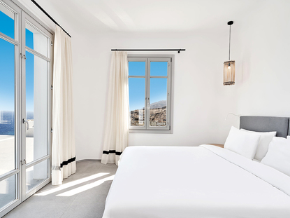 Zwischen der Türkei und Griechenland liegt mitten im Ägäischen Meer die Inselgruppe der Kykladen. Die Insel Mykonos gilt als eine der beliebtesten dieser griechischen Inseln, nicht zuletzt aufgrund der typischen weißen Häuser und weißen Windmühlen, die sich strahlend vom tiefblauen Meer abheben. Hier erleben Sie während Ihres Urlaubs in Kalo Livadi ruhige Momente fernab des Trubels. Umgeben von den Orten Ano Mera im Inneren der Insel und den benachbarten Küstenorten Elia und Kalafati liegt der Strand von Kalo Livadi in einer malerischen Bucht. Er gehört zu den längsten Sandstränden von Mykonos. Hier finden Sie in Ihrem Urlaub in Kalo Livadi immer ein ruhiges Plätzchen, während der leichte Wind für angenehme Temperaturen sorgt. Das saubere Meerwasser lädt zum Schwimmen und Planschen ein und sorgt in der Mittagshitze für wohltuende Erfrischung. Das kristallklare Wasser eignet sich außerdem hervorragend zum Schnorcheln.