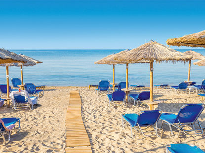 Wenn Sie auf die Insel Thassos im Ägäischen Meer in Griechenland reisen werden Sie von der Vielfalt der Pflanzen bezaubert sein. Die Insel wird nicht umsonst der „grüne Smaragd der Nordägäis“ genannt, denn hier gibt es neben traumhaften Stränden an türkisblauem Meer auch dicht bewachsene Wälder und massive Gebirgsketten. Die drei großen Bergzüge sind das Kathares-Massiv, das Trikorfo-Massiv und das Ypsarion-Massiv, wobei letztes das Höchste ist. Während Ihres Urlaubs auf Thassos entdecken Sie traditionelle Bergdörfer inmitten von Fichtenwäldern gelegen. Eines davon ist Theologos, das sich an den Ausläufern des Ypsarion befindet. Dieser malerische Ort beeindruckt durch seine traditionell aus Bruchstein gebauten Häuser. Die Kirche zum Heiligen Dimitrios beherbergt ein holzgeschnitztes Altargelände, das detailliert Szenen aus dem Alten und dem Neuen Testament darstellt. Auch das Volkskundemuseum bietet auf Ihrer günstigen Pauschalreise eine sehenswerte Einführung in die Geschichte von Thassos. Das ehemalige Fischerdorf Potos an der Nordküste der Insel liegt an einer zwei Kilometer langen Bucht, die durch kristallklares Wasser und feinen Sand beeindruckt. Hier kommen Wassersportfans und Schnorchler bei einem Urlaub auf Thassos voll auf ihre Kosten. Oberhalb der Bucht laden üppig bewachsene Olivenhaine zum Spazieren ein. Zu den beliebtesten Stränden der Insel zählt der Strand Paradisos, der wie der Name schon sagt, inmitten grüner Natur paradiesisch schön gelegen ist. Das seichte Wasser bietet Ihnen in Ihrem Urlaub Thassos ideale Badebedingungen.