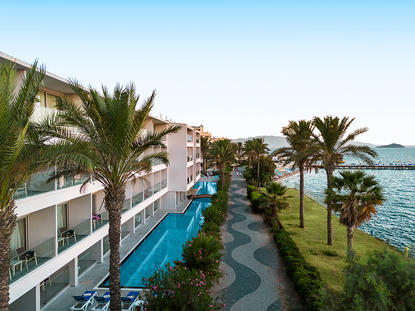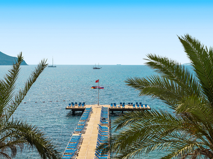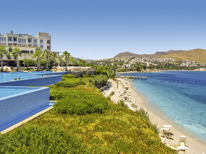 Im Westen der Halbinsel Bodrum an der türkischen Ägäis liegt die Stadt Turgutreis. Sie gehört zu den aufstrebenden Ferienorten der Türkei und ist besonders für ihre traumhaft schönen Sonnenuntergänge bekannt. In einem der kleinen türkischen Restaurants am Hafen werden Sie in Ihrem Urlaub in Bodrum Turgutreis romantische Augenblicke erleben. Die tiefrote Sonne verschwindet malerisch hinter den Segelbooten, während sich am Horizont die zahlreichen Inseln rund um Turgutreis abzeichnen. Tagsüber lassen Sie sich am kilometerlangen goldenen Sandstrand von den warmen Sonnenstrahlen auf Ihrer Haut verwöhnen. Die idealen Winde und das warme Mittelmeer lassen das Herz eines jeden Wassersportlers höherschlagen. Beim Windsurfen oder Segeln gleiten Sie über das glitzernde türkisblaue Wasser hinweg und genießen die traumhafte Aussicht auf die vorgelagerten griechischen Inseln. Hinter der Küstenlinie erstrecken sich hingegen die imposanten Bergen des Taurusgebirges. Bei einer Bootstour zu einer der Inseln werden Sie in Ihrem Urlaub in Bodrum Turgutreis idyllische Buchten und paradiesische Strände erkunden.