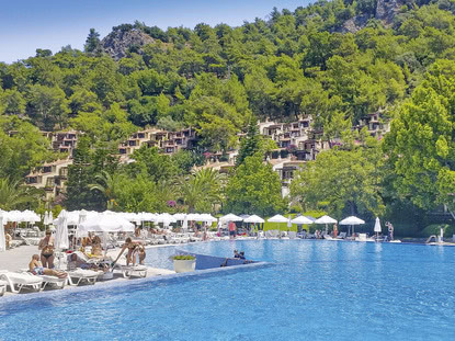Unweit von Fethiye befindet sich die Bucht von Ölüdeniz, die den schönsten Strand der Türkei besitzt. Der weiße Sandstrand mit dem türkisblauen Meer lädt zum ausgiebigen Baden und Sonnen ein. Erkunden Sie auch die sich im Golf von Fethiye befindenden zwölf Inseln bei einer Bootstour. Ebenfalls empfehlenswert ist in Ihrem Urlaub in Fethiye ein Ausflug zu dem imposanten Saklikent Canyon des Taurusgebirges. In die 18 Kilometer lange und bis zu 300 Meter hohe Schlucht mit dem Fluss Xanthos gelangen Sie über Holzstege an der Felswand. Im Anschluss können Sie in einem der gemütlichen Restaurants verweilen. Unternehmen Sie unbedingt einen Ausflug in die Geisterstadt Kayaköy, in der bis 1922 Griechen lebten. Das heutige Museumsdorf steht unter Denkmalschutz. Die bedeutendsten, noch erhaltenen Gebäude sind zwei griechisch-orthodoxe Kirchenruinen. Daneben bietet Ihnen ein Privatmuseum einen interessanten Einblick in die Geschichte von Kayaköy. Buchen Sie jetzt Ihren Urlaub in Fethiye mit alltours sensationell günstig und wandeln Sie auf den Spuren der Antike!