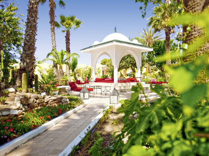 Der beliebte Ferienort Hammamet liegt in Tunesien im Südosten der Halbinsel Cap Bon direkt am Mittelmeer. Die im Norden des Landes gelegene Landschaft ist berühmt für die weiten Küstenlandschaften mit weitläufigen Stränden. In Ihrem Urlaub in Hammamet erwartet Sie ein kilometerlanger, heller Sandstrand, der sanft in das türkisblaue Meer des Golfs von Hammamet abfällt. Entlang der Küstenpromenaden ziehen sich zahllose duftende Zitronen- und Orangenhaine und Jasmingärten. Viele komfortable Hotels der Stadt bieten Ihnen einen direkten Zugang zum klaren und warmen Wasser am herrlichen Strand. Während Ihres Urlaubs in Hammamet wird Sie die historische Medina, wie die Altstadt Hammamets genannt wird, bezaubern. Die Medina ist nur 200 Quadratmeter groß und wird noch heute von ihren historischen Stadtmauern gerahmt. Sie bietet Ihnen entlang der Marktgassen am Haupttor zahlreiche kleine Geschäfte und lädt mit ihren kleinen Gasthäusern zu einer Pause ein. Hammamet ist nur 65 Kilometer von der tunesischen Hauptstadt Tunis entfernt und zog mit ihrem eindrucksvollen Stadtbild schon berühmte Gäste wie Oscar Wilde oder den Maler Paul Klee an.